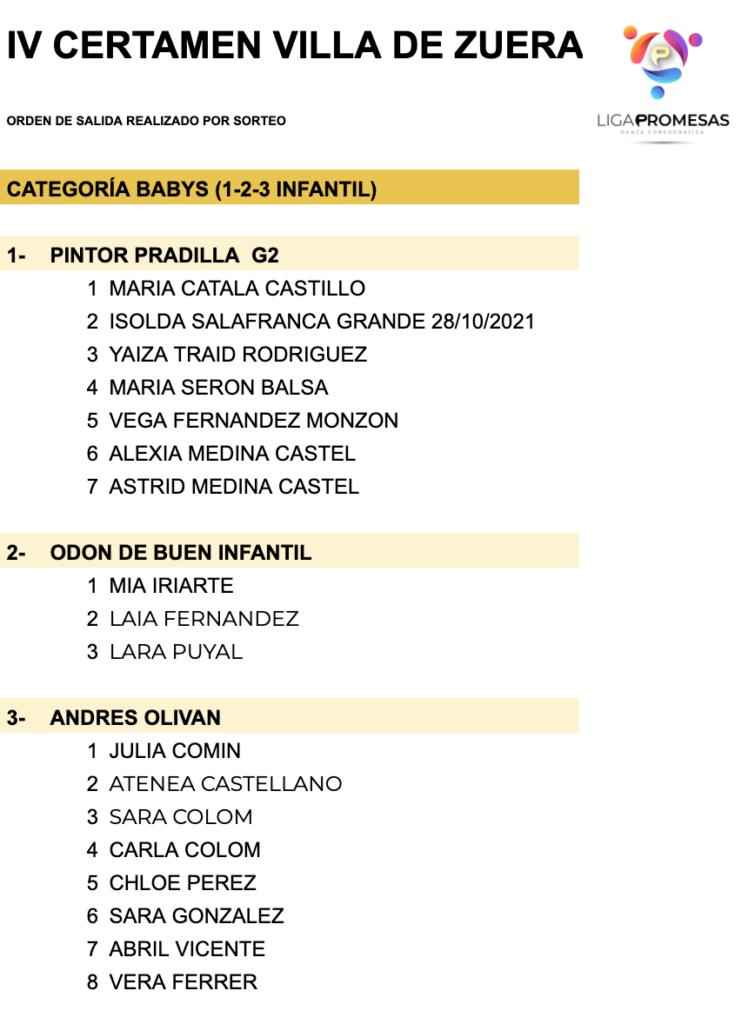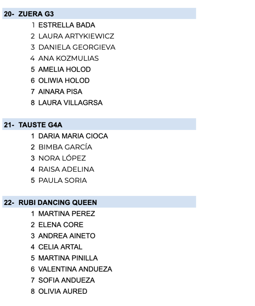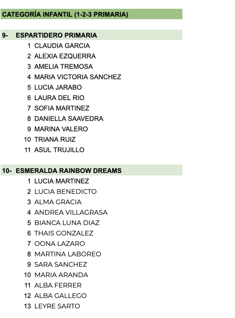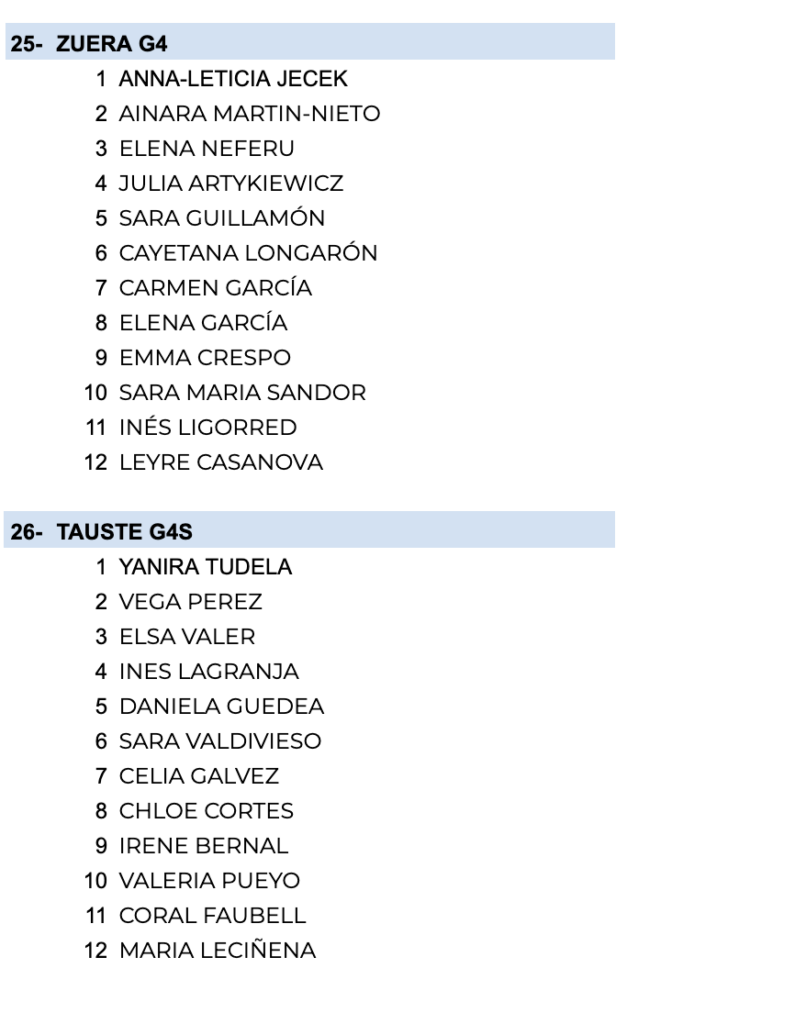 Una vez iniciada la competición no podrá haber cambios en este listado.