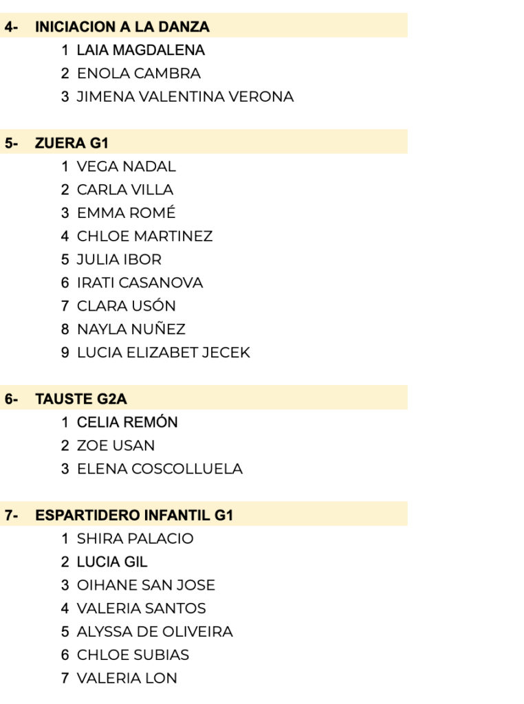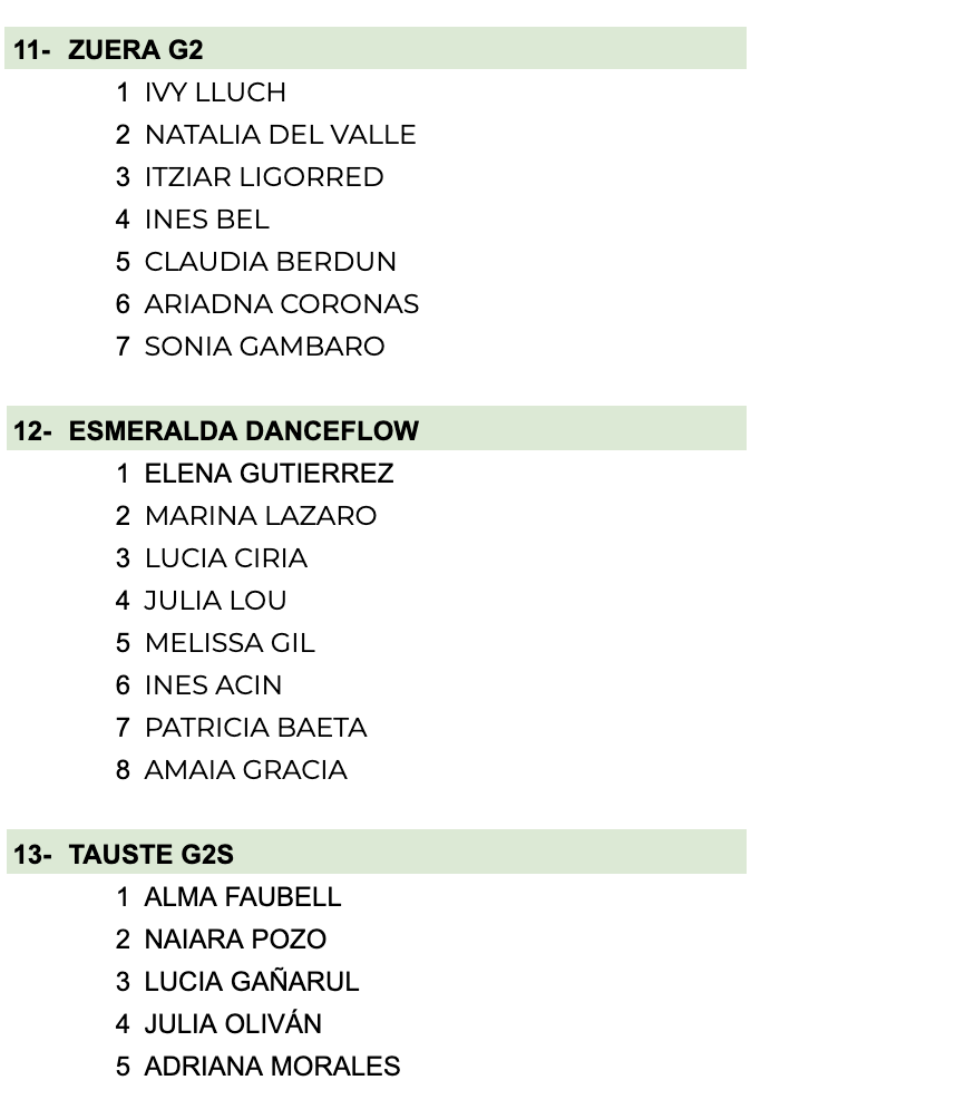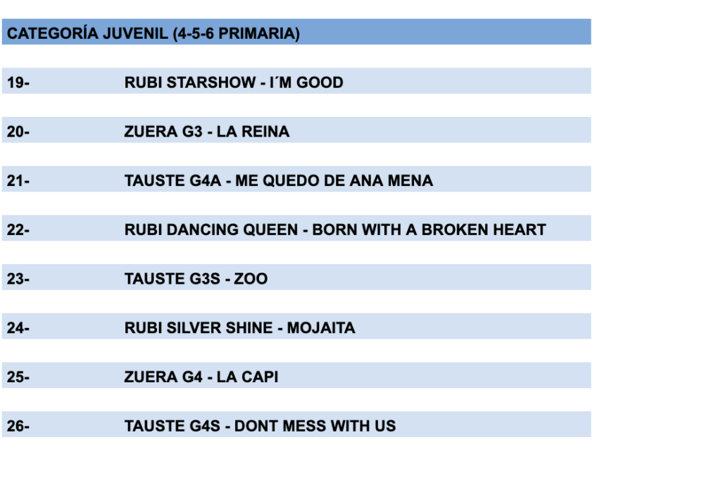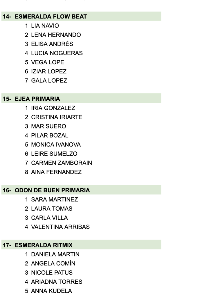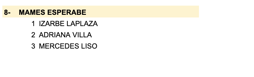 Una vez iniciada la competición no podrá haber cambios en este listado.