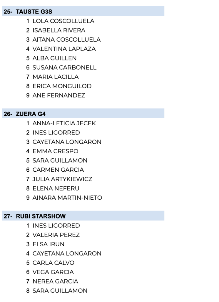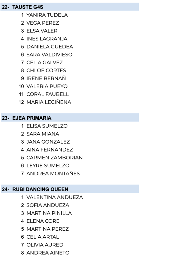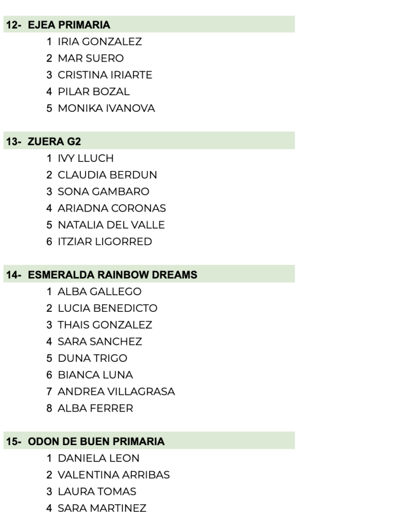 Una vez iniciada la competición no podrá haber cambios en este listado.