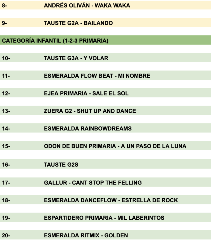 (Aquí se informará de los grupos que pasen a la final y se dará la medalla de participación a los grupos que no hayan pasado a la final)